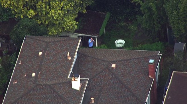 There are photographs of the suspect standing on the roof of a house, firing several shots at police helicopters. And the armed shooter defiantly strolled down the street with his rifle in hand. No motive has been determined at this time.
