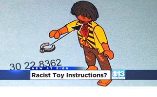 The mother of a 5-year-old Melanoid boy was shocked and disgusted by what she saw while assembling his birthday gift, which was purchased from Toys R Us. The contents of the packaging were something she’d never saw before. From first glance, the toy that her son was to receive as a gift appeared to be a pirate ship, inhabited by small figurines that were included with the toy ship. However, one of the figurines in the box has dark skin, and comes with a slave collar. In fact, page 13 of the toy’s instruction manual gives a clear description on how to place the collar on the neck of the dark-skinned figurine.