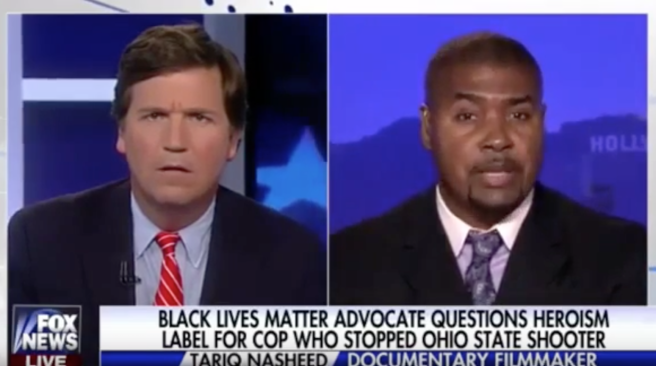 When Carlson appeared to be losing intellectual ground with Nasheed, Carlson was reduced to engaging in spewing child-like personal insults. The producers at Fox News also incorrectly labeled Nasheed a “Black Lives Matter Activist”, when he has repeatedly stated he has nothing to do with the organization.