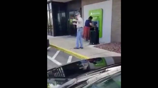 In a very disturbing video that was taken today in Montgomery Alabama, an open white supremacist male is seen violently harassing a Black woman as she is using the ATM outside of Regions Bank location. The white supremacist male can be heard calling the Black woman a “whore” and a “nigger”.